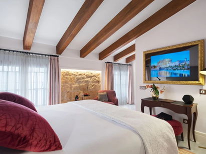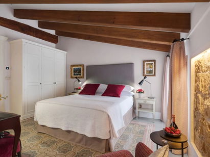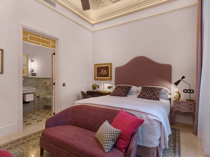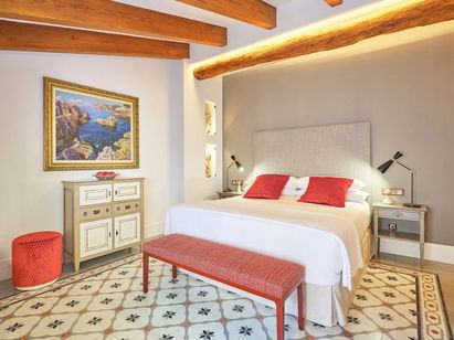 Magical rooms with sunlight and colour overlooking the courtyard or Carrer Sant Jaume, ideal for guests looking for a little more space. The colour of the floor is what has determined the rest of the room's colours. For this reason, each room has its own colour scheme.